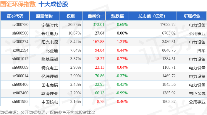 国证环保(399358)指数十大成份股详情如下: