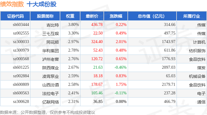 资金流向方面,绩效指数(399398)成份股当日主力资金净流出合计12.11亿元,游资资金净流入合计1.53亿元,散户资金净流入合计10.58亿元。成份股资金流向详情见下表: