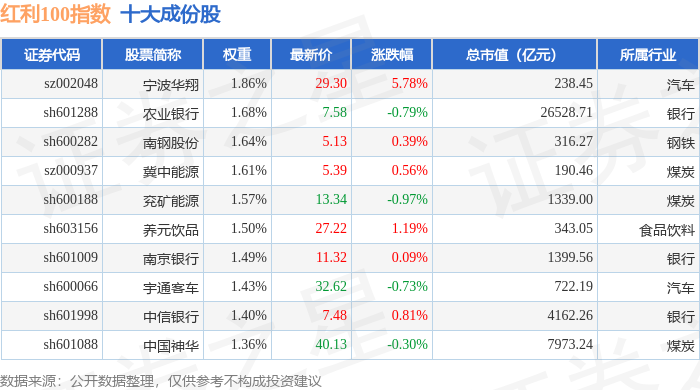 资金流向方面,红利100(399411)指数成份股当日主力资金净流出合计10.71亿元,游资资金净流入合计2.57亿元,散户资金净流入合计8.13亿元。成份股资金流向详情见下表: