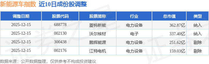 近10日内新能源车(399417)指数成份股做了调整,新纳入了2只股票,剔除了2只股票。