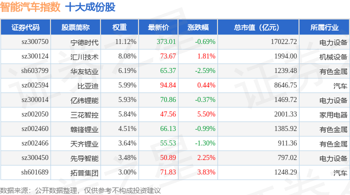 资金流向方面,智能汽车(399432)指数成份股当日主力资金净流入合计1.62亿元,游资资金净流出合计4.68亿元,散户资金净流入合计3.06亿元。成份股资金流向详情见下表: