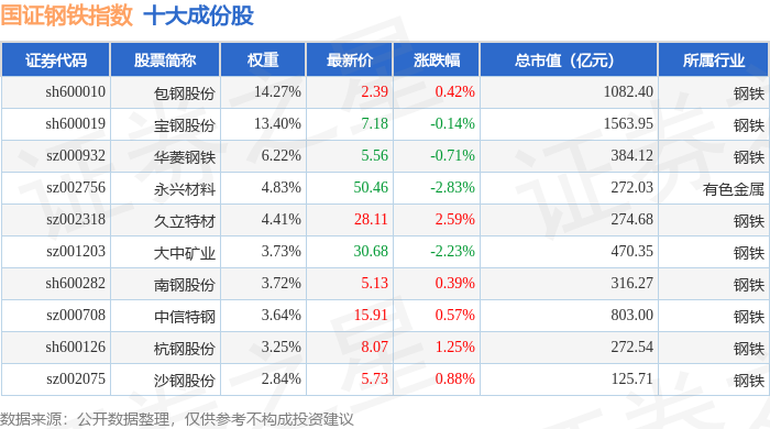 近10日内国证钢铁(399440)指数成份股做了调整,新纳入了3只股票,剔除了3只股票。