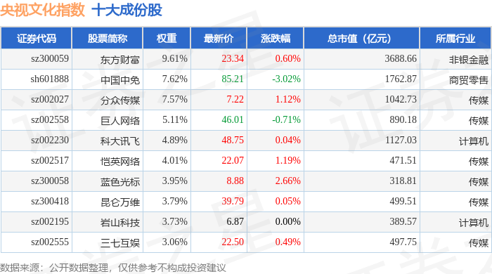 近10日内央视文化(399557)指数成份股做了调整,新纳入了1只股票,剔除了1只股票。