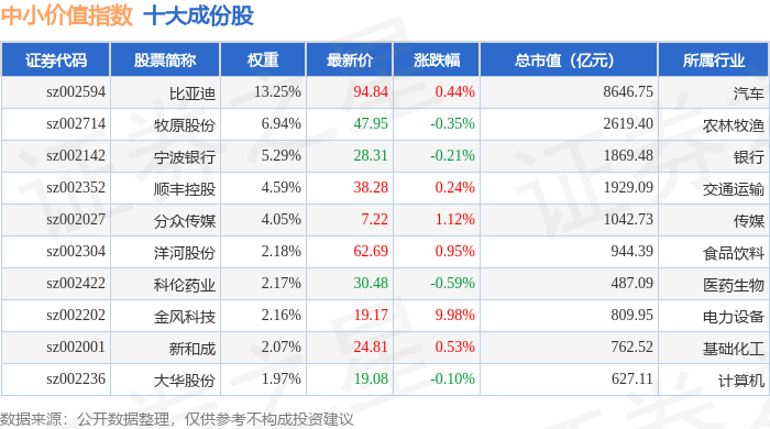 证券之星消息,12月25日,中小价值(399604)指数报收于2011.16点,涨0.53%,成交379.02亿元,换手率1.0%。当日该指数成份股中,上涨的有60家,金风科技以9.98%的涨幅领涨,下跌的有30家,巨星科技以3.9%的跌幅领跌。
