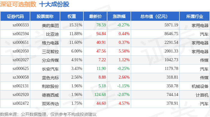 深证可选(399616)指数十大成份股详情如下: