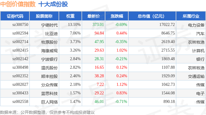 中创价值(399627)指数十大成份股详情如下: