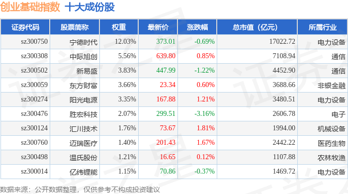证券之星消息,12月25日,创业基础(399640)指数报收于2970.17点,涨0.66%,成交4137.8亿元,换手率3.41%。当日该指数成份股中,上涨的有483家,昊志机电以20.01%的涨幅领涨,下跌的有171家,侨源股份以5.1%的跌幅领跌。