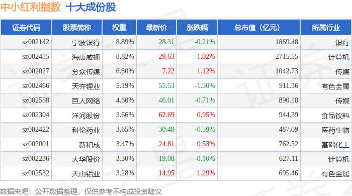 中小红利(399649)指数十大成份股详情如下: