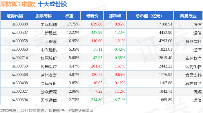 证券之星消息,12月25日,深防御50(399671)指数报收于10107.33点,涨0.34%,成交686.47亿元,换手率1.79%。当日该指数成份股中,上涨的有36家,海大集团以4.13%的涨幅领涨,下跌的有13家,天孚通信以3.71%的跌幅领跌。