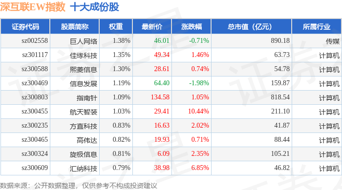 深互联EW(399677)指数十大成份股详情如下: