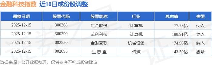 近10日内金融科技(399699)指数成份股做了调整,新纳入了3只股票,剔除了1只股票。