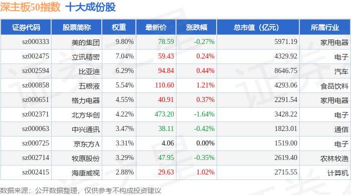 证券之星消息,12月25日,深主板50(399750)指数报收于8911.1点,涨0.06%,成交465.34亿元,换手率0.7%。当日该指数成份股中,上涨的有31家,海大集团以4.13%的涨幅领涨,下跌的有18家,鹏鼎控股以1.78%的跌幅领跌。