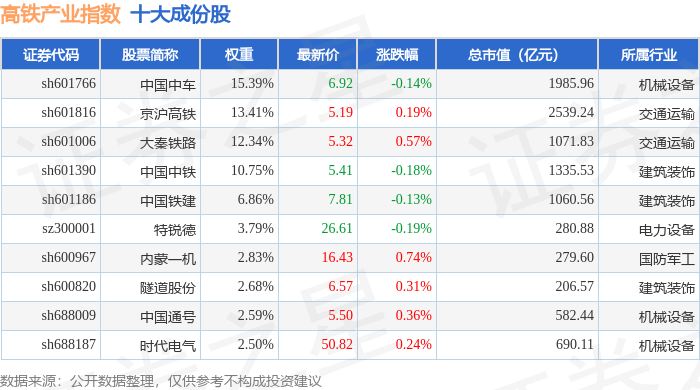 资金流向方面,高铁产业(399807)指数成份股当日主力资金净流出合计1.64亿元,游资资金净流出合计1.81亿元,散户资金净流入合计3.42亿元。成份股资金流向详情见下表: