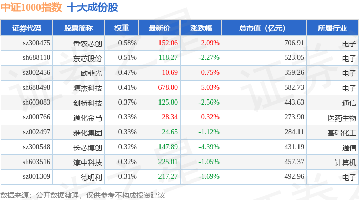 近10日内中证1000(399852)指数成份股做了调整,新纳入了100只股票,剔除了100只股票。