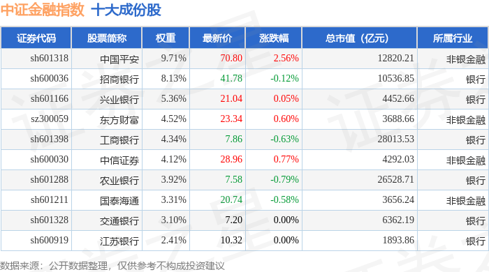 中证金融(399934)指数十大成份股详情如下: