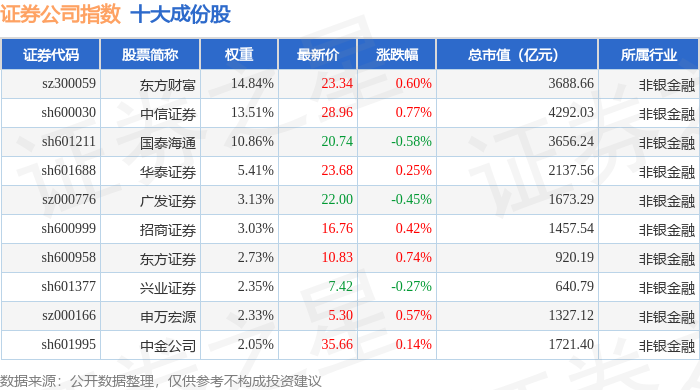 证券公司(399975)指数十大成份股详情如下: