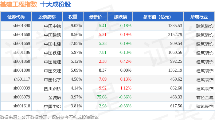 基建工程(399995)指数十大成份股详情如下: