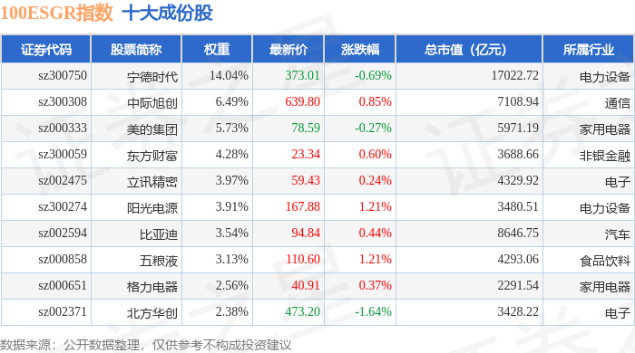 100ESGR(470027)指数十大成份股详情如下:
