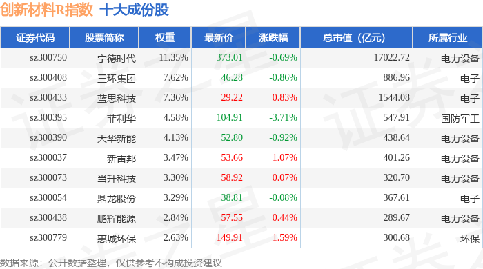 创新材料R(470039)指数十大成份股详情如下: