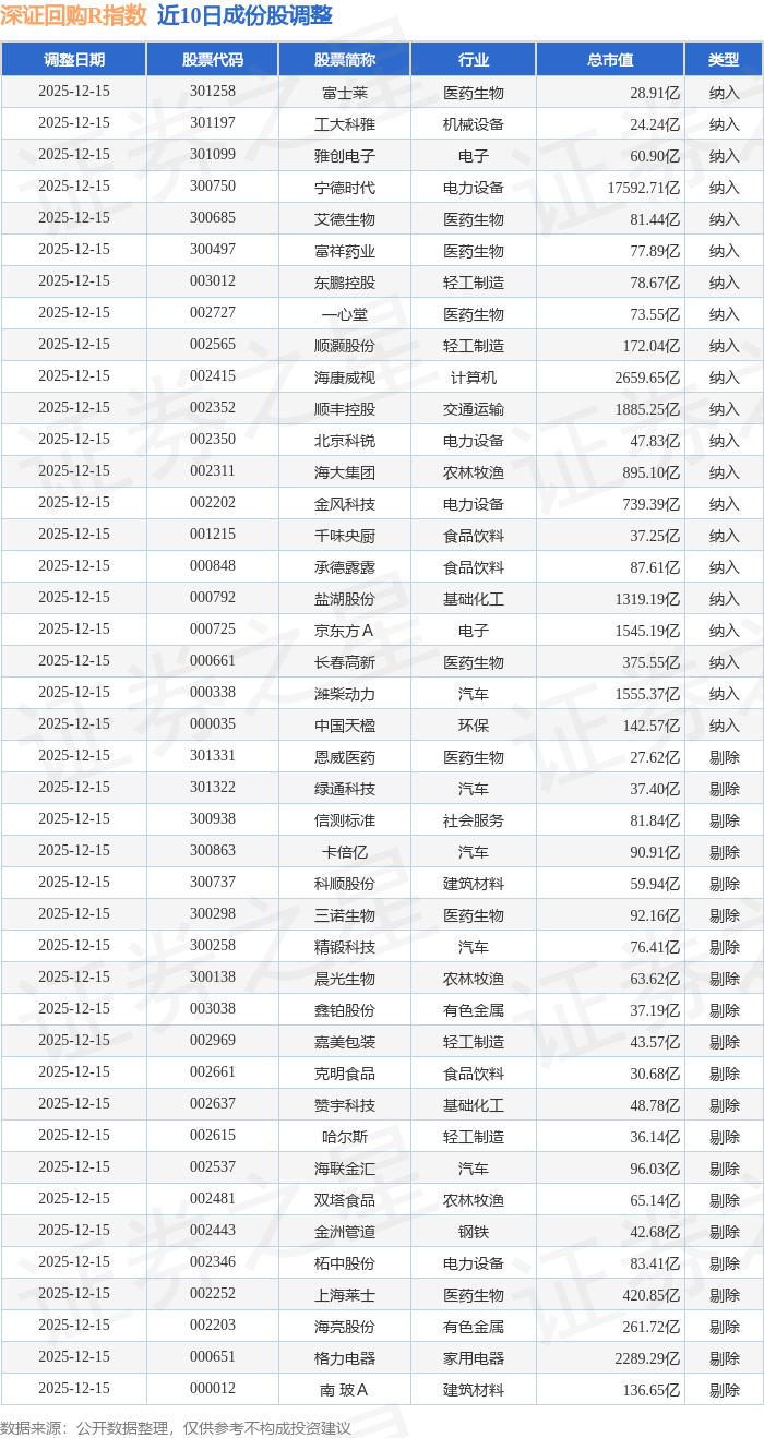 近10日内深证回购R(470063)指数成份股做了调整,新纳入了21只股票,剔除了21只股票。