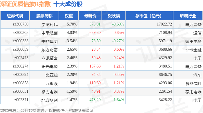 证券之星消息,12月25日,深证优质信披R(470065)指数报收于3722.5点,涨0.44%,成交3652.63亿元,换手率1.47%。当日该指数成份股中,上涨的有352家,信维通信以13.35%的涨幅领涨,下跌的有151家,海峡股份以5.23%的跌幅领跌。