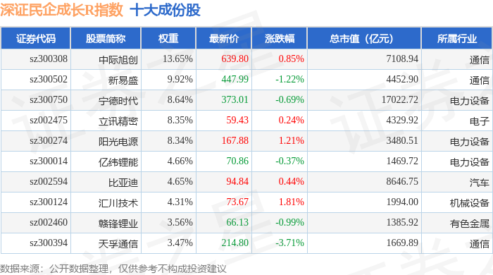 深证民企成长R(470071)指数十大成份股详情如下: