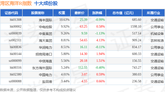 近10日内湾区海洋R(480019)指数成份股做了调整,新纳入了2只股票。