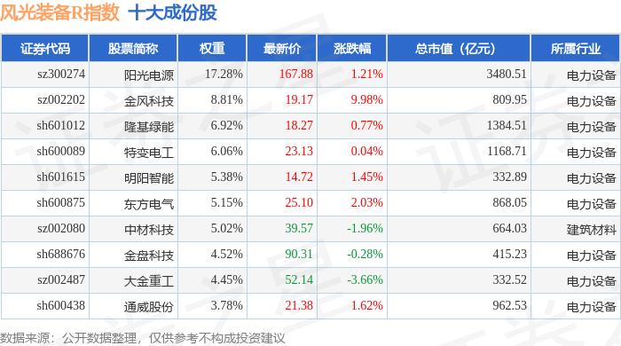 近10日内风光装备R(480026)指数成份股做了调整,新纳入了3只股票,剔除了3只股票。