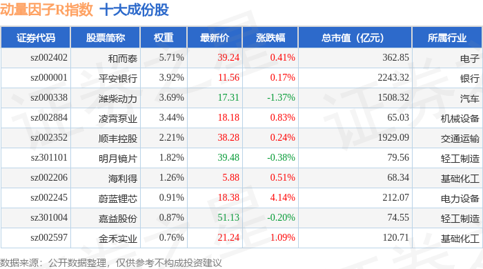 动量因子R(480057)指数十大成份股详情如下: