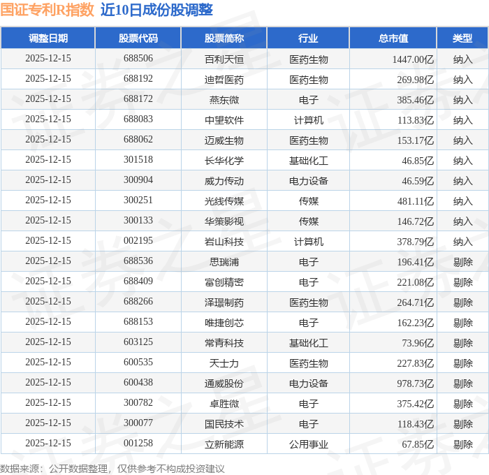 近10日内国证专利R(480070)指数成份股做了调整,新纳入了10只股票,剔除了10只股票。