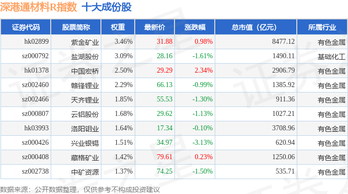 深港通材料R(483015)指数十大成份股详情如下: