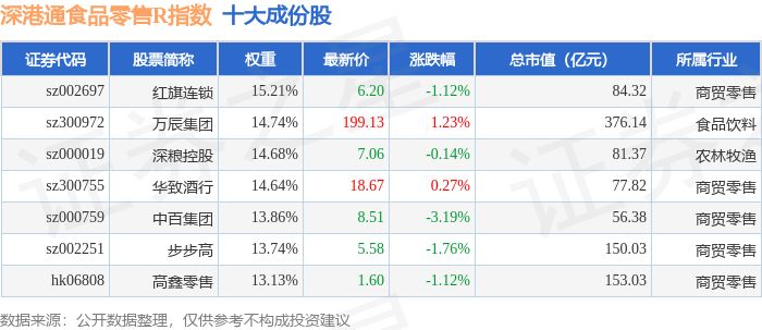 深港通食品零售R(483037)指数十大成份股详情如下: