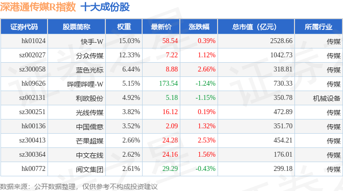 近10日内深港通传媒R(483075)指数成份股做了调整,新纳入了6只股票。