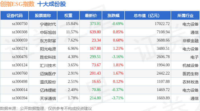 创指ESG(970028)指数十大成份股详情如下: