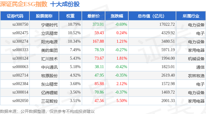 证券之星消息,12月25日,深证民企ESG(970056)指数报收于2041.09点,涨0.64%,成交878.29亿元,换手率2.12%。当日该指数成份股中,上涨的有32家,信维通信以13.35%的涨幅领涨,下跌的有17家,大金重工以3.66%的跌幅领跌。