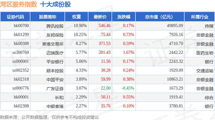 湾区服务(980011)指数十大成份股详情如下:
