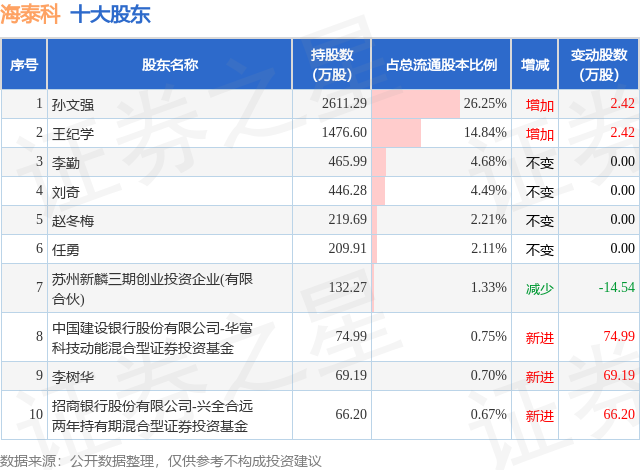 根据海泰科2025年三季报公布的十大股东详情如下: