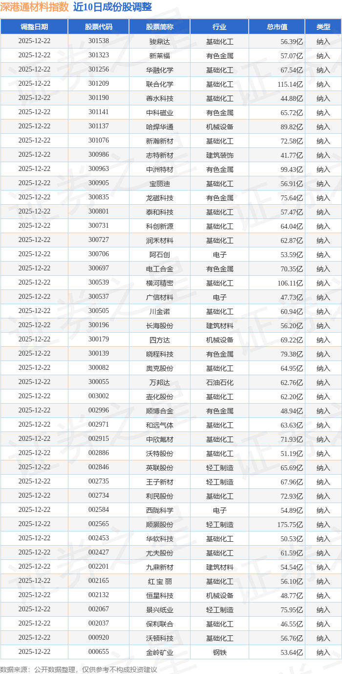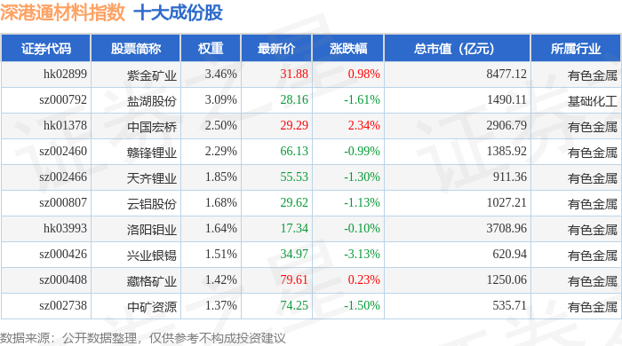 深港通材料(983015)指数十大成份股详情如下: