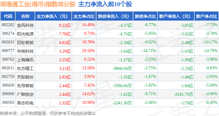 资金流向方面,深港通工业(港币)(983018)指数成份股当日主力资金净流出合计3.82亿元,游资资金净流出合计25.14亿元,散户资金净流入合计28.96亿元。成份股资金流向详情见下表: