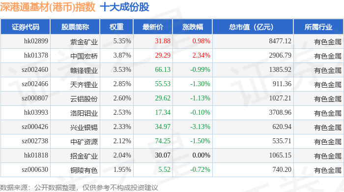 深港通基材(港币)(983062)指数十大成份股详情如下: