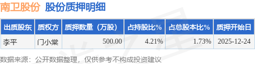 证券之星消息,南卫股份(603880)12月26日公开信息显示,股东李平向门小棠合计质押500.0万股,占总股本1.73%。质押详情见下表: