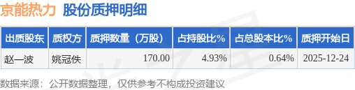 证券之星消息,京能热力(002893)12月26日公开信息显示,股东赵一波向姚冠佚合计质押170.0万股,占总股本0.64%。质押详情见下表:
