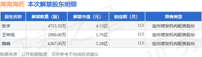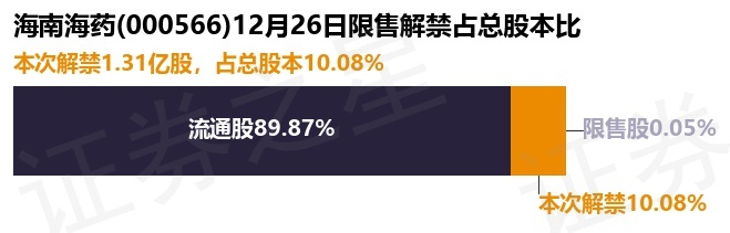 证券之星消息,根据市场公开信息整理,海南海药(000566)于12月26日将有1.31亿股限售股份解禁,为公司定向增发机构配售股份,占公司总股本10.08%。(本次数据根据历史公告整理得出,实际情况以上市公司最新公告为准)本次解禁后,公司还有62.95万股限售股份,占总股本0.05%。具体如下图所示: