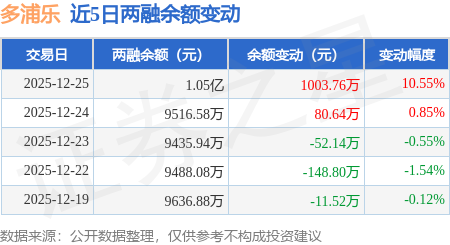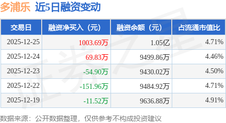 证券之星消息,12月25日,多浦乐(301528)融资买入2688.54万元,融资偿还1684.85万元,融资净买入1003.69万元,融资余额1.05亿元。