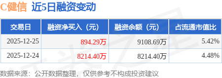 证券之星消息,12月25日,C健信(688805)融资买入5210.27万元,融资偿还4315.98万元,融资净买入894.29万元,融资余额9108.69万元。
