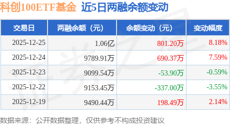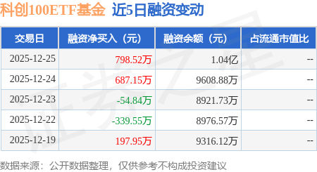 证券之星消息,12月25日,科创100ETF基金(588220)融资买入2187.64万元,融资偿还1389.12万元,融资净买入798.52万元,融资余额1.04亿元,近20个交易日中有11个交易日出现融资净买入。