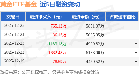 证券之星消息,12月25日,黄金ETF基金(518660)融资买入1457.01万元,融资偿还691.89万元,融资净买入765.12万元,融资余额5851.07万元,近20个交易日中有11个交易日出现融资净买入。