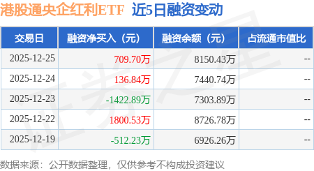 证券之星消息,12月25日,港股通央企红利ETF(513920)融资买入1096.23万元,融资偿还386.54万元,融资净买入709.7万元,融资余额8150.43万元,近20个交易日中有13个交易日出现融资净买入。