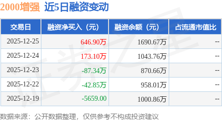 证券之星消息,12月25日,2000增强(159552)融资买入842.97万元,融资偿还196.07万元,融资净买入646.9万元,融资余额1690.67万元。