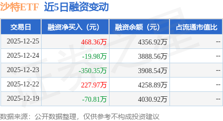 证券之星消息,12月25日,沙特ETF(159329)融资买入619.19万元,融资偿还150.83万元,融资净买入468.36万元,融资余额4356.92万元,近20个交易日中有11个交易日出现融资净买入。